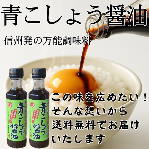 この醤油は安曇野産の青こしょうをまろやか信州醤油でじっくり煮込んだ数量限定品です。