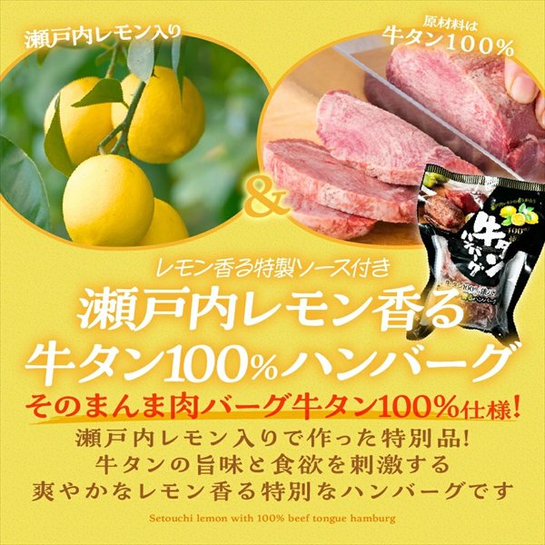 牛タンハンバーグ180g×2個 瀬戸内レモン香る牛タン100%肉バーグ